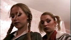 긴 붉은 strapon 딜도가지고 노는 strapon 두 뜨거운 레즈비언