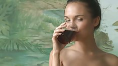 아름 다운 아마추어 대학 자기 호텔에서 엿