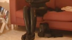 금발의 댄 누드에서 팬티스타킹 및 발뒤꿈치 부분이 뚫린 것
