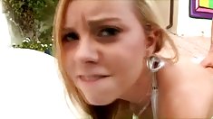 멋진 금발 그녀의 찢어진된 남자 친구 못 strapon