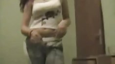 화장실에서 튼튼한 아마추어 레즈비언 섹스